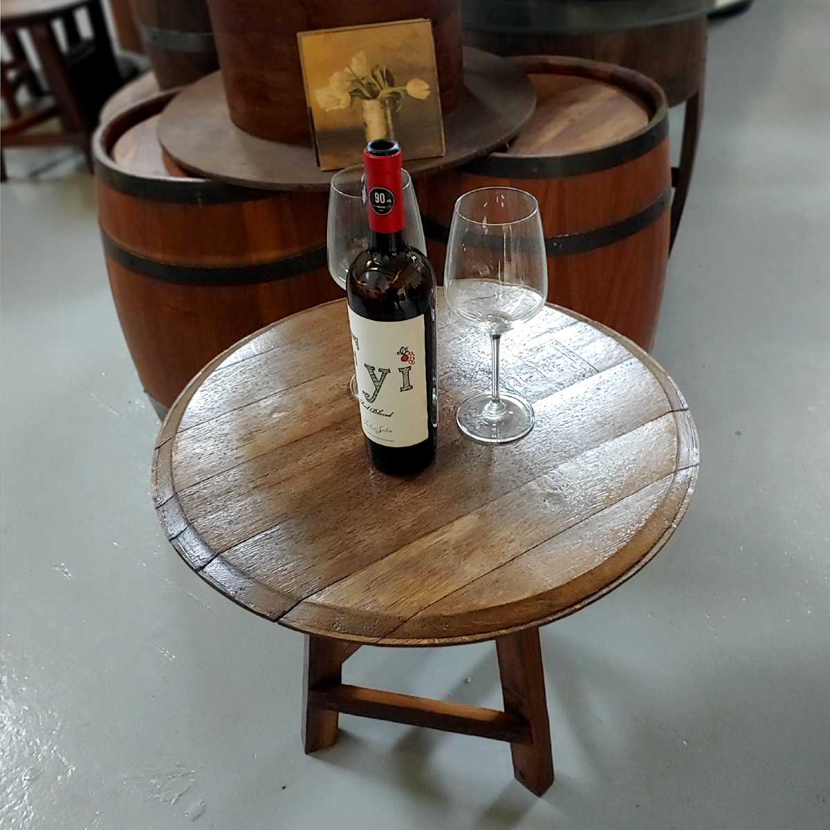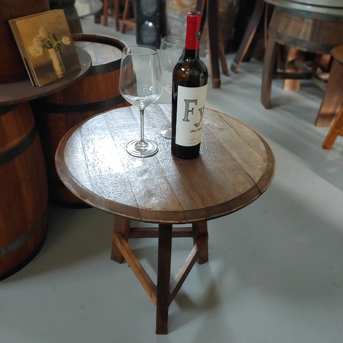 오크뚜껑 낮은테이블 오크통소품 목록 판매가 : 100,000 원 (V.A.T 별도) 배송 : 택배착불 크기 : 윗지름 53~55 cm / 높이 49.5 ~ 50 cm 페이지 정보 클래식 22-04-18 16:40 730회 0건 관련링크 이전 다음 목록 본문 와인오크통과 빈티지오크통의 뚜껑을 상판으로 사용한 낮은 테이블입니다.카페 테이블이나 와인 테이블또는 장식용으로 쓰기에 적합합니다.